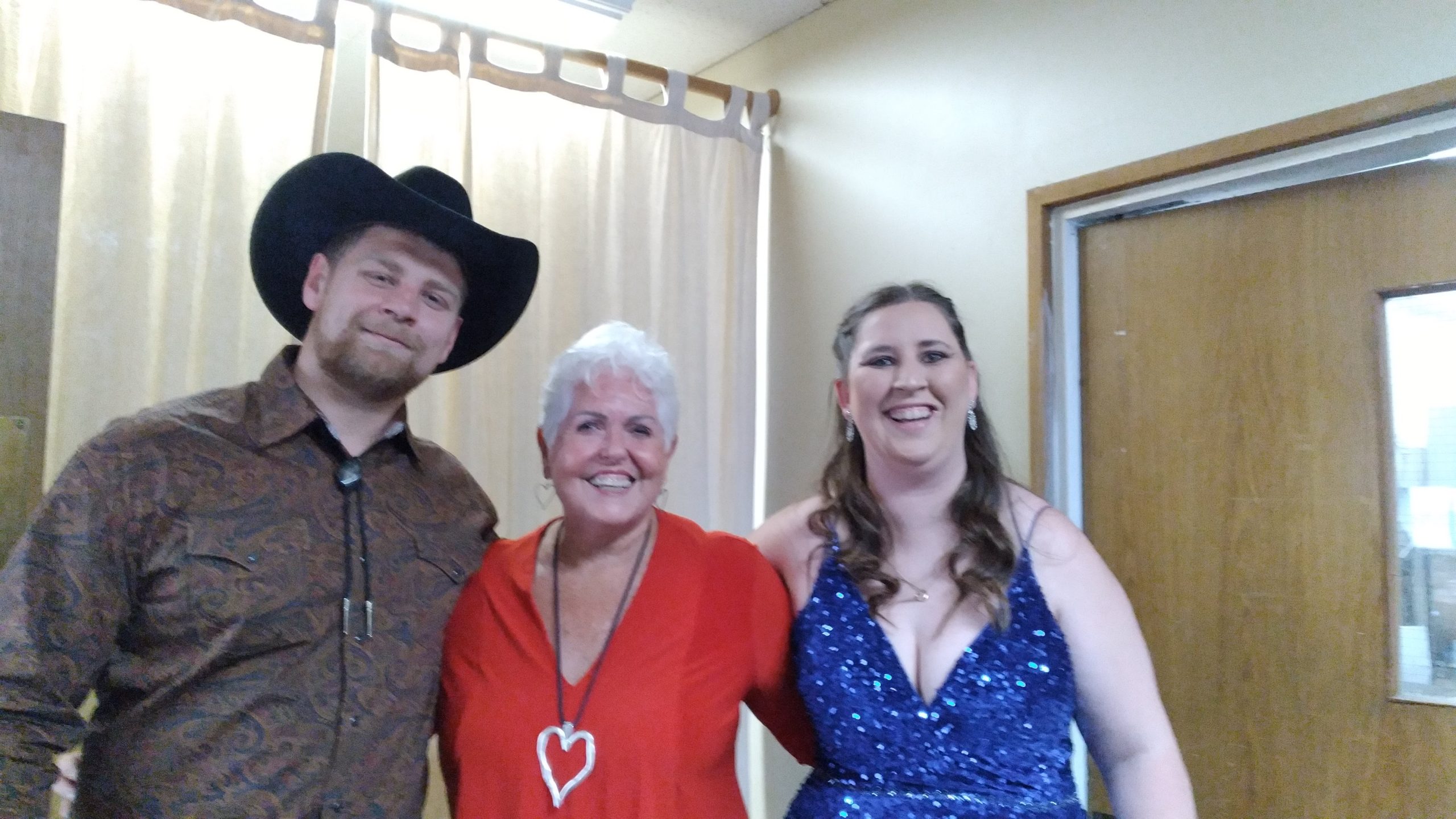 The Groom provided the catering and the reception was of a Western theme and many of the guests were in boots and Western gear. What fun! The Bridesmaids wore ivory/cream dresses which complimented the Groomsmen in jeans, blue denim shirts, cowboy boots and black hats! The Bride wore an outstanding full length, cobalt blue, sequined gown. While the wedding was a casual affair there was so much love in the air and everyone was keen to celebrate this happy marriage. Best of luck to the happy couple.