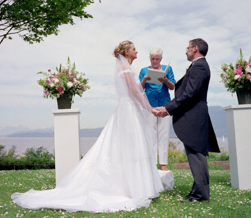 Lindsay & Steve were finally joined in marriage on August 29 2021. We met in September 2019 for their planned September 2020 wedding which had to be postponed. The ceremony was held at the UBC Boathouse in Richmond on a beautiful and hot summer day. The bride was gorgeous in a sleeveless, just below the knee dress wedding dress and her handsome groom looked dashing in a marine blue suit. While they had planned for a much larger guest list they still had 6 attendants, a Flower Girl and Ring Bearer. This long delayed wedding was a joy as they took their vows as husband and wife. Congratulations to a wonderful couple and blessings for many years of happiness!